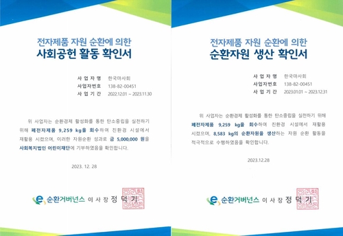 한국마사회는 환경부와의 비영리법인과의 협업을 통해 전자제품 폐기 대신 재활용 처리를 하고 있다. 지난해 3월부터 이 활동을 의무화하여 9.3톤의 폐전자제품 중 8.6톤의 자원을 순환 생산하였으며, 이로 인해 22톤(CO2-eq)에 달하는 온실가스를 감축하는 성과를 이뤘다.